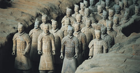 The Terracotta Warriors is located in east of Lintong District of Xian, China, lying Lishan Mountain in south and facing Weihe River in north. With its large scale and overwhelming momentum, the Terracotta Warriors is regarded as the Eighth World Wonder and was listed into 5A world cultural heritage in 1987. The Terracotta Warriors is a collection of terracotta figures showcasing the armies of Qin Shi Huang, the first Emperor of China. There are three main square-shaped pits hosting these warriors, chariots and horses.
