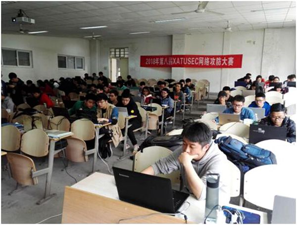 4�14日,由西安工业大学主办的�2018年第八届XATUSEC网络攻防大赛�在西安工业大学未央校区成功举行。参加本次竞赛的有来自计算机学院、光电工程学陀经济管理学陀电子信息工程学陀理学院、北方信息工程学院等一、二、三年级以及研究生,共计48支参赛队�117名学生�