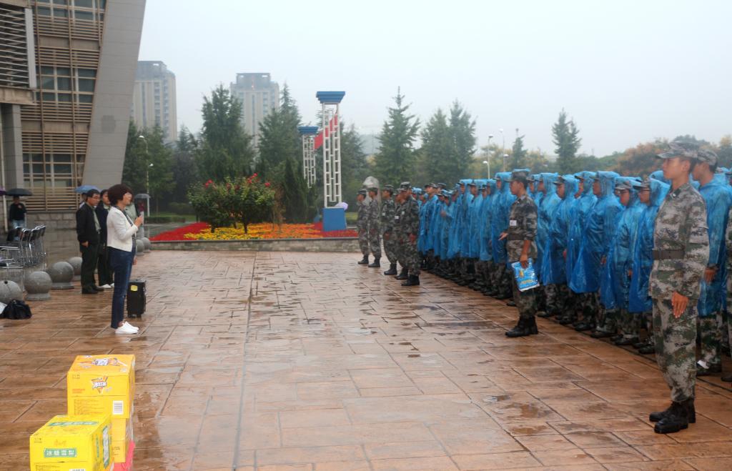 9�18日,计算机科学与工程学院党委副书记李明芳一行看望慰问了冒雨坚持训练的教官及学生,辅导员组长杨小斐老师主持慰问活动�