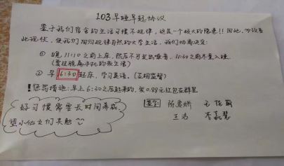 我们学院想到这种做法的起因是2014级软件工程专业有一个宿舍的几个学生,因为大家制定了共同的约定,例如早上6:30起床一起学英语�23:00必须熄灯等等,并且为之坚持了四年�