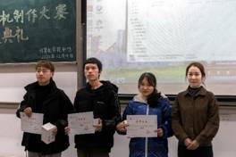 科协�12�4日晚在教1-205举行颁奖典礼,院团委书记呼延晓蓉和有关辅导员老师、团学科青各主席和所有参赛人员参加了颁奖典礼�
