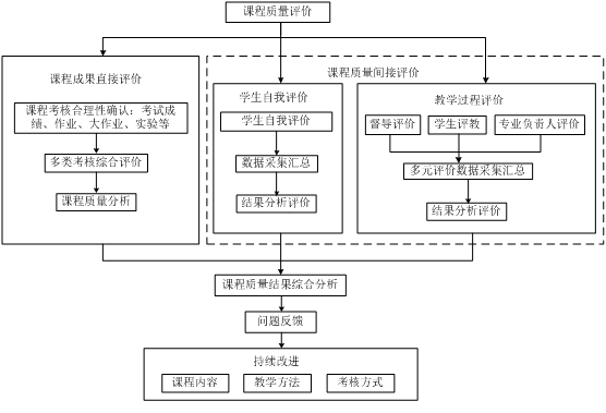 课程质量评价是质量监控的核心,也是毕业要求达成情况评价的依据。面向产生出的课程质量评价聚焦学生的学习成效,课程内容、教学方法和考核方式必须与该课程支撑的毕业要求相匹配。