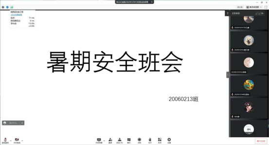 组织各班级分专业召开暑期安全教育主题线上会,会议由各年级辅导员主持,全体同学参加会议。