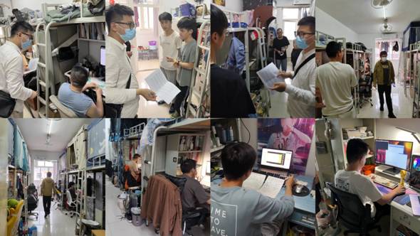 全体辅导员深入学生宿舍,督促学生认真上网课,保证线上教学质量。走访发现,大部分学生精神面貌良好,能积极专注投入网课学习,目前在学习与生活上暂无困难。