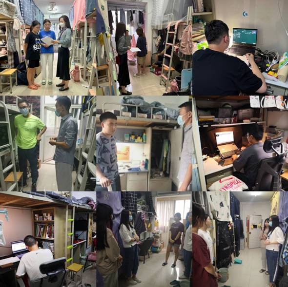 此外,辅导员们深入细致地关怀学生的生活情况,了解大家有无生活上的困难,提醒同学们按时做核酸、每天开窗通风、及时清理垃圾,并强调静态管理要求:非必要不出宿舍,外出要戴好口罩,不堂食、不聚集;如有困难,及时告知辅导员协调解决。目前,大部分宿舍卫生状况良好,学生们线上教学秩序井然。
