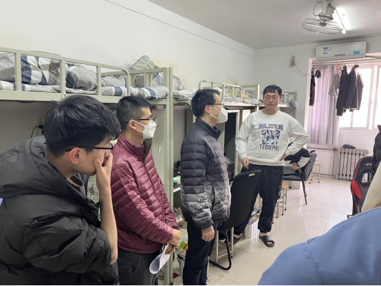 党委副书记靳永军同各年级辅导员于2月26日深入走访学生宿舍,引导学生坚定理想信念,维护身心健康,合理规划学业,开启新学期新征程。