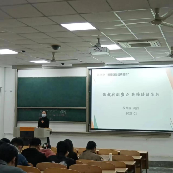 为进一步宣传普及结核病防治知识,动员全体同学行动起来预防和控制结核病,在第21个“世界防治结核病日”来临之际,于教1-202开展主题为“你我共同努力,终结结核流行”春季传染病预防知识讲座。