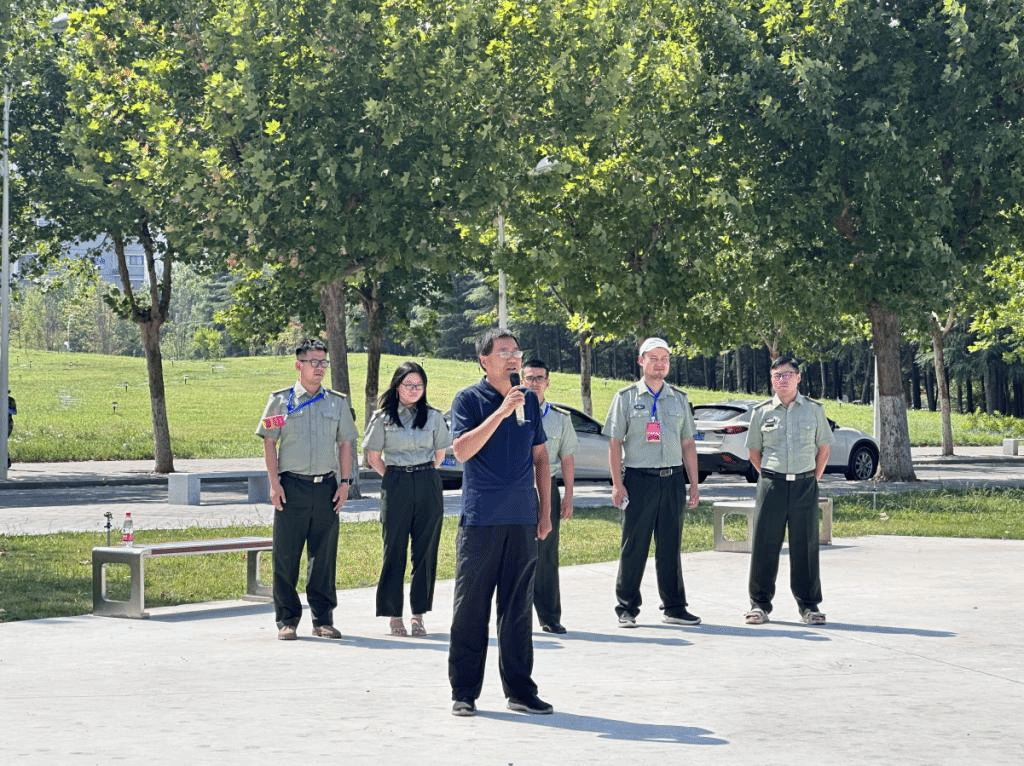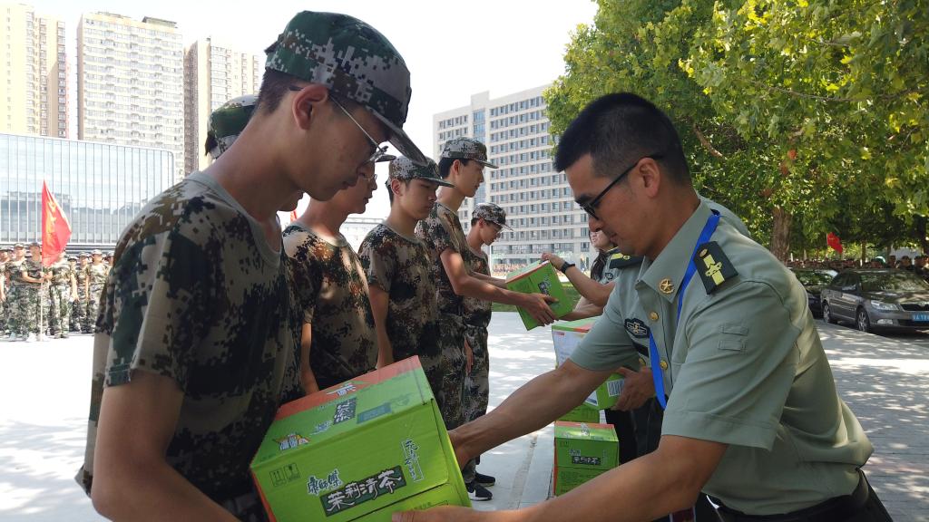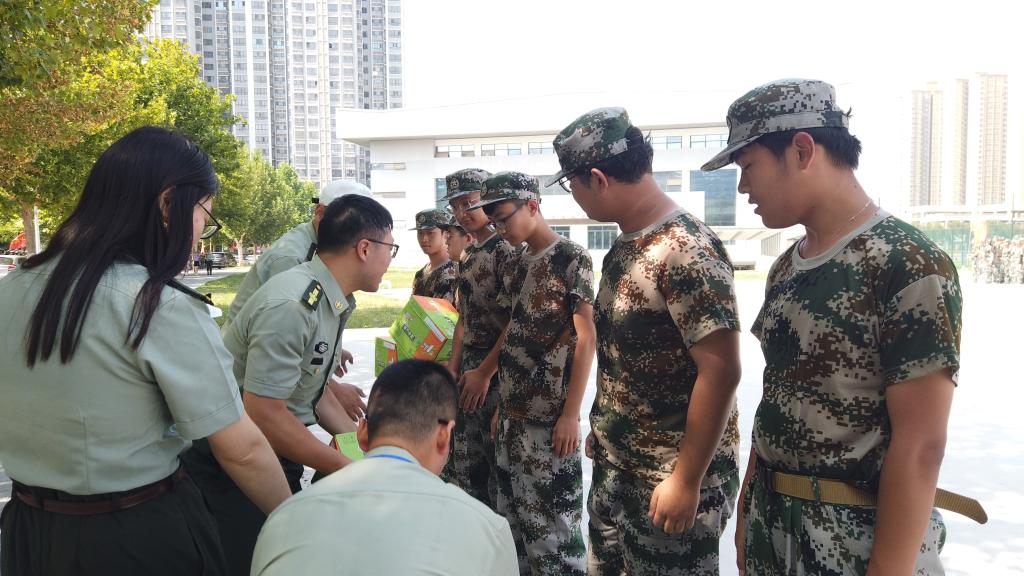 党委书记杨正强带领参训辅导员一起赴训练场地向军训教官、参训学子发放慰问物资并做慰问讲话。