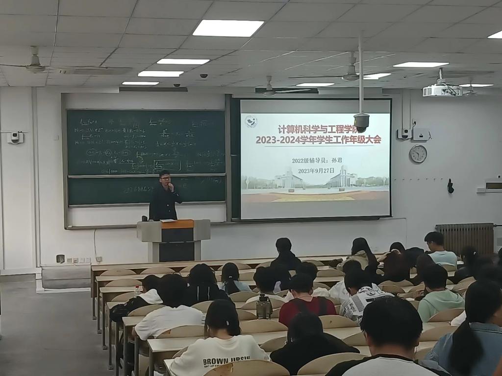 为为确保同学们健康安全度过中秋节、国庆节假期,牢固树立“安全第一”意识,合理安排假期生活。9月27日下午18点,计算机学院在教1-101召开2022级学生年级大会,会议由51短剧