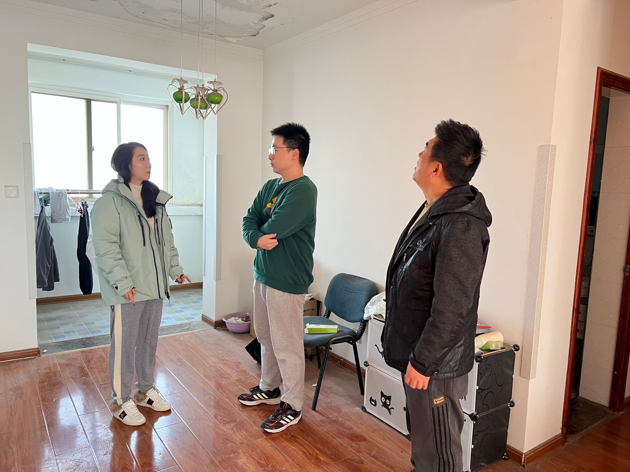 辅导员呼延晓蓉、解军强、胡凯一行走访校外住宿同学的住所。