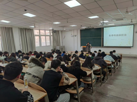 会上,王梦馨首先开展了冬季传染病防治的宣传,提醒同学们注意身体健康,做好宿舍卫生清洁、勤通风,在人员密集的公共场所科学佩戴口罩,若出现发热感冒等症状,需及时就医;随后针对接下来陆续开始的四六级考试和期末考试,进行了考风考纪教育,要求同学们严格遵守考场纪律,不得有携带手机、智能手表等电子设备,夹带小抄等作弊行为;最后,王梦馨对同学们进行了心理健康教育,提醒同学们在课程学习之余,关注个人心理健康,若出现情绪困扰,可寻求辅导员及学校心理中心的帮助。