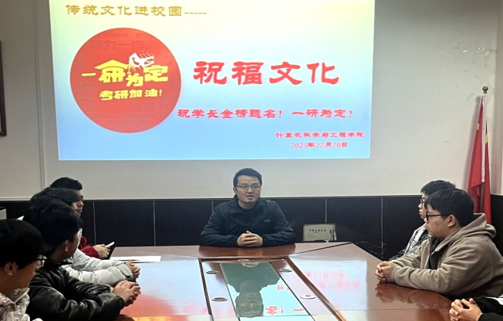 12月20日上午,我院在工1-306为学院24届考研学生赠送祝福贺卡和礼物,学院党委副书记靳永军老师,考研代表和学弟学妹代表及老师代表参加了会议。