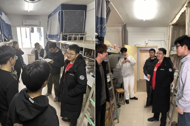 走访过程中,学院两位领导与同学们进行了亲切的交流,详细询问了大家的假期家庭情况、校园生活、补考复习及开学准备情况。