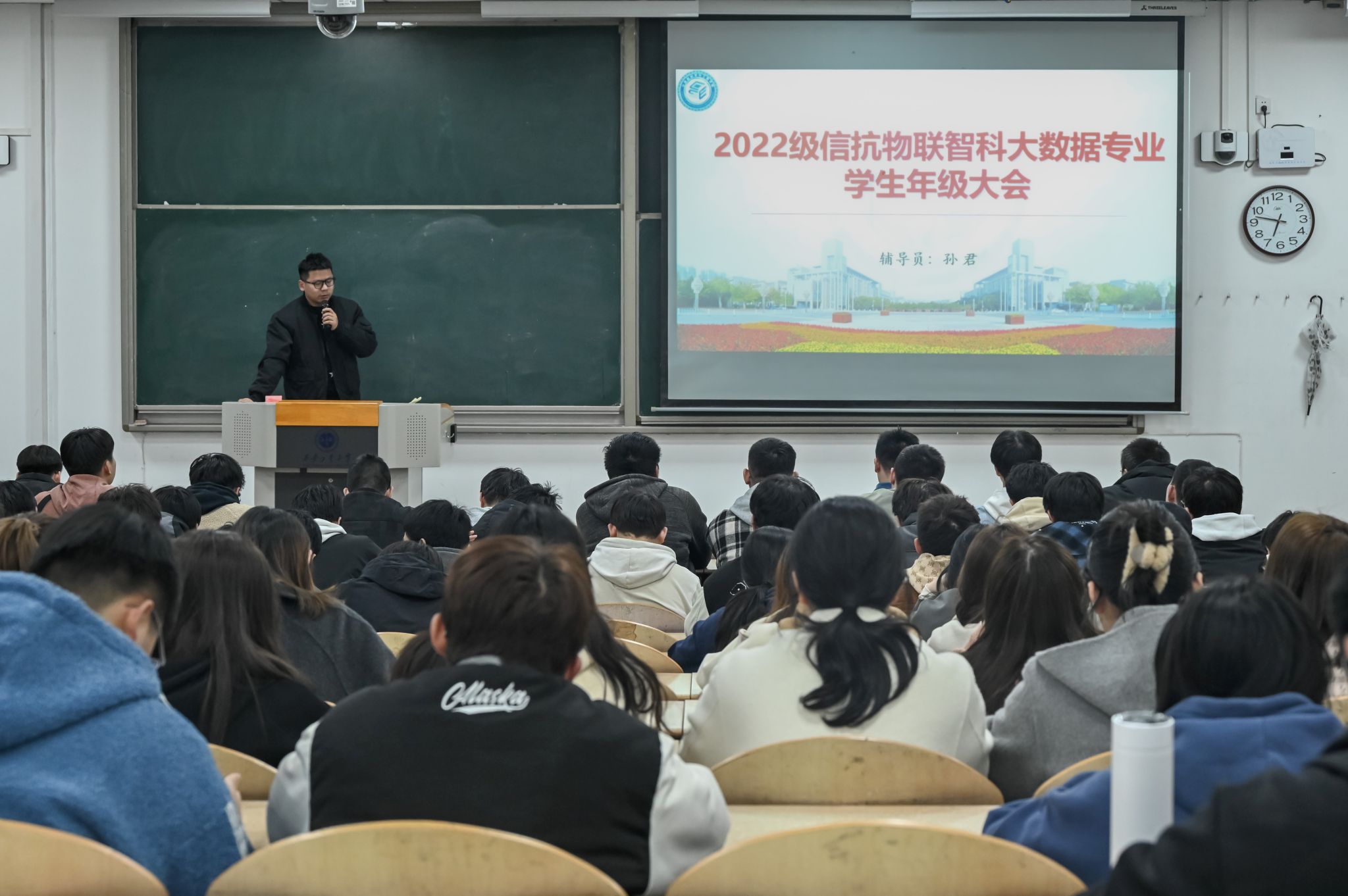 在教1-102召开2022级学生年级大会,信息对抗、物联网工程、智能科学与技术、数据科学与大数据技术专业全体学生参会,会议由51短剧