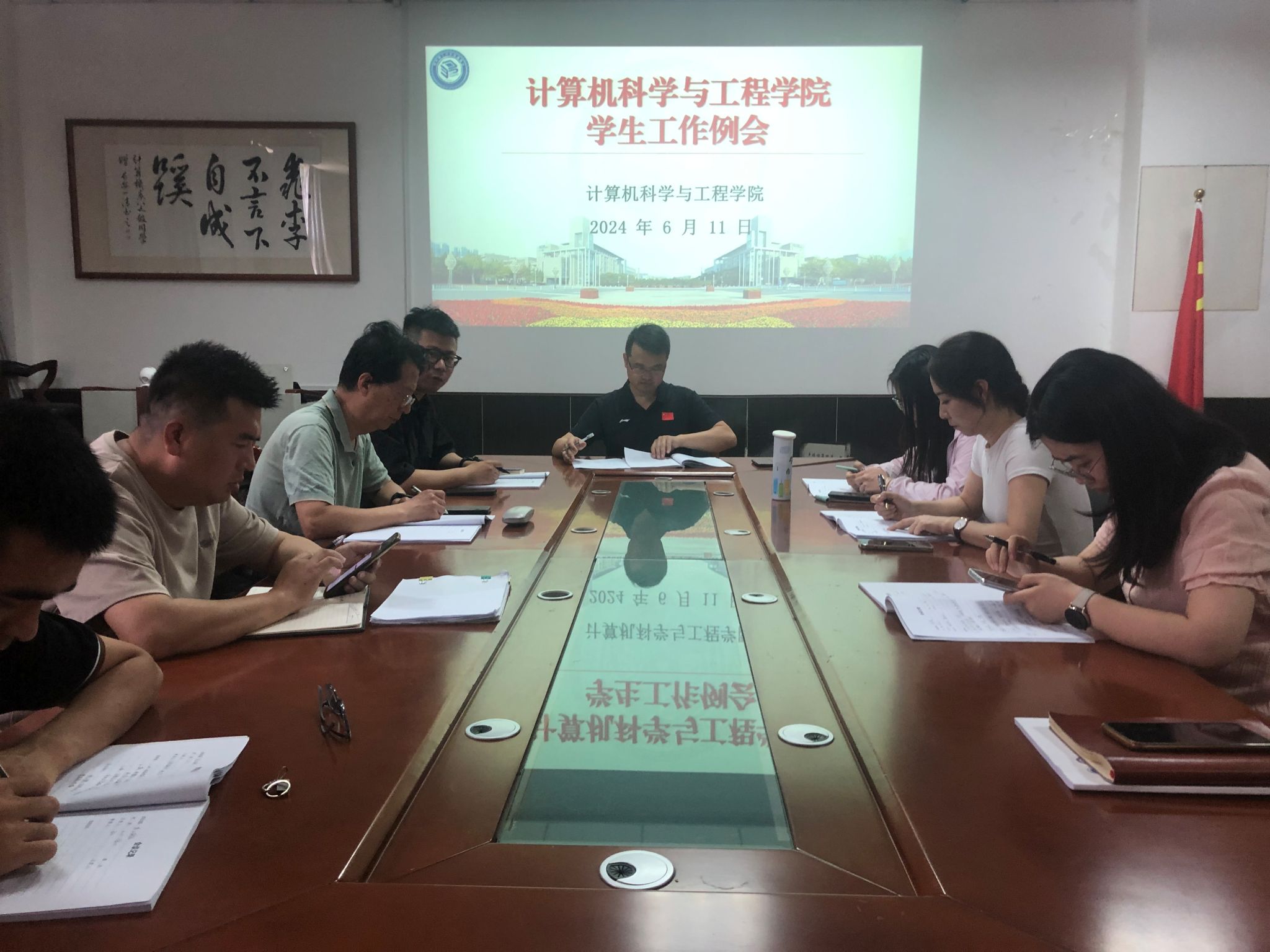 在工1-306召开学工干部例会布置近期工作,学院党委副书记靳永军及全体辅导员参会,会议由学工办主任孙君主持。