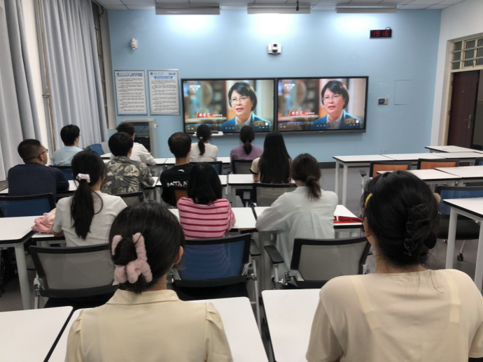 在教3-114组织少数民族学生开展优秀校友事迹学习会,会上观看了时代楷模单杏花的先进事迹视频。