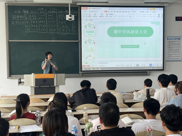 胡凯老师针对期中考试情况进行总结分析,指出当前学业中存在的共性问题,并提出三点要求:一是端正学习态度,合理规划时间;二是加强课堂互动,提升学习效率;三是组建互助小组,实现“短板共补”。于杰老师宣读了《学风建设倡议书》,鼓励学生以“优秀学子经验分享会”为契机,对标先进、查漏补缺,营造“比学赶帮超”的良性竞争氛围。