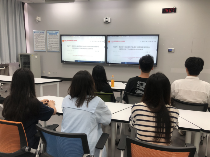 组织学院少数民族学生在教3-103学习了习近平总书记在庆祝中华全国总工会成立100周年暨全国劳动模范和先进工作者表彰大会上的重要讲话。