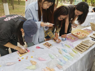 参与者以空相框为画布,自由选择奶油胶勾边、卡通饰品、轻黏土塑形等多元材料进行创作。学院辅导员王梦馨老师全程参与指导,她表示:"通过双手创造美的过程,能有效缓解学业压力。我们特别鼓励理工科同学突破思维定式,在艺术表达中寻找情绪出口。"