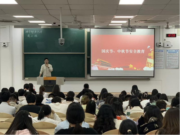 明晰规划守底线,安全教育贯始终:三位辅导员详细讲解了国庆、中秋双节放假安排,并重点强调“去向登记”制度,提醒同学们如实填报行程,筑牢个人安全第一道防线。在安全教育环节,辅导员结合典型案例,从防范电信诈骗、消防安全、实验室规范等方面展开讲解,引导学生树立“安全无小事”的责任意识。