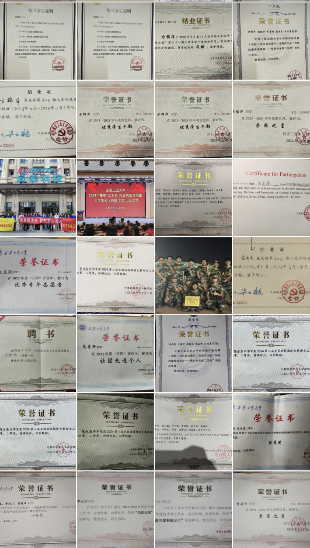 挑战杯新生院三等奖/网络攻防大赛三等奖/ 中国大学生服务外包创新创业大赛校赛一等奖/数学建模新生杯三等奖 |