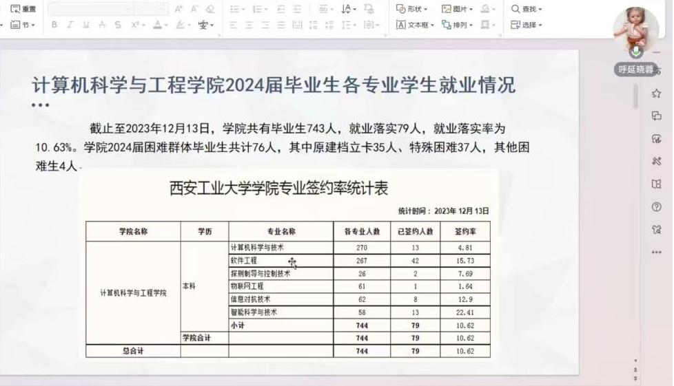 呼延老师先是详细分析了2024届毕业生各专业学生就业情况,并分享了学院的就业率数据,以及51短剧