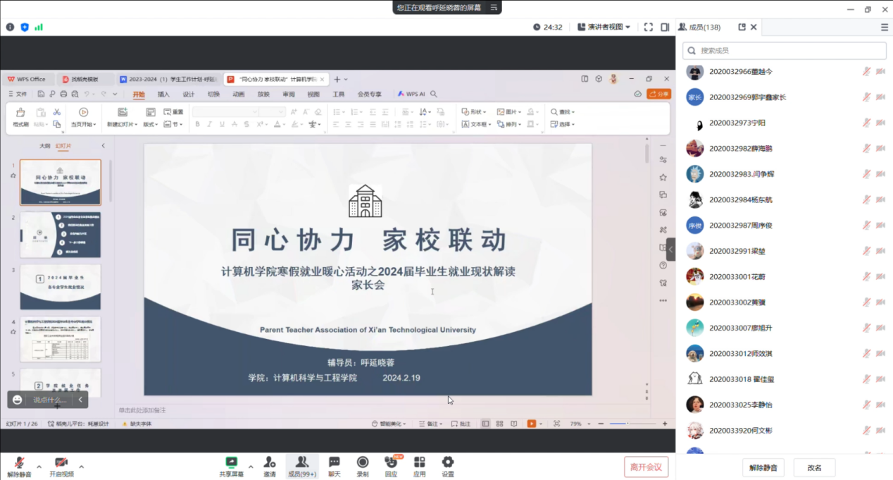 寒假就业暖心活动之2024 届毕业生就业现状解读家长会”。此次活动旨在加强学校与家长的联系,共同探讨毕业生的就业问题。