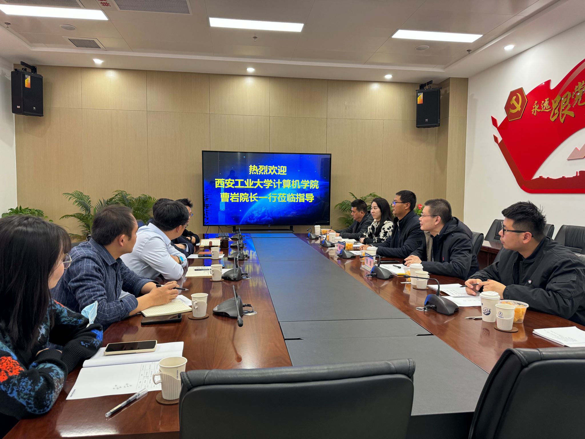 院长曹岩、党委书记杨正强、学生工作组组长孙君、毕业班辅导员呼延晓蓉、胡凯、解军强一行人赴航天七七一特种计算机设计事业部进行参观交流。航天七七一所专业总工程师/特种计算机设计事业部、总经理刘泽响、特种计算机设计事业部党总支书记李强、总经理助理唐金锋、办公室主任陈冀琛、人事主管吴亦凡等相关负责人参加交流座谈。