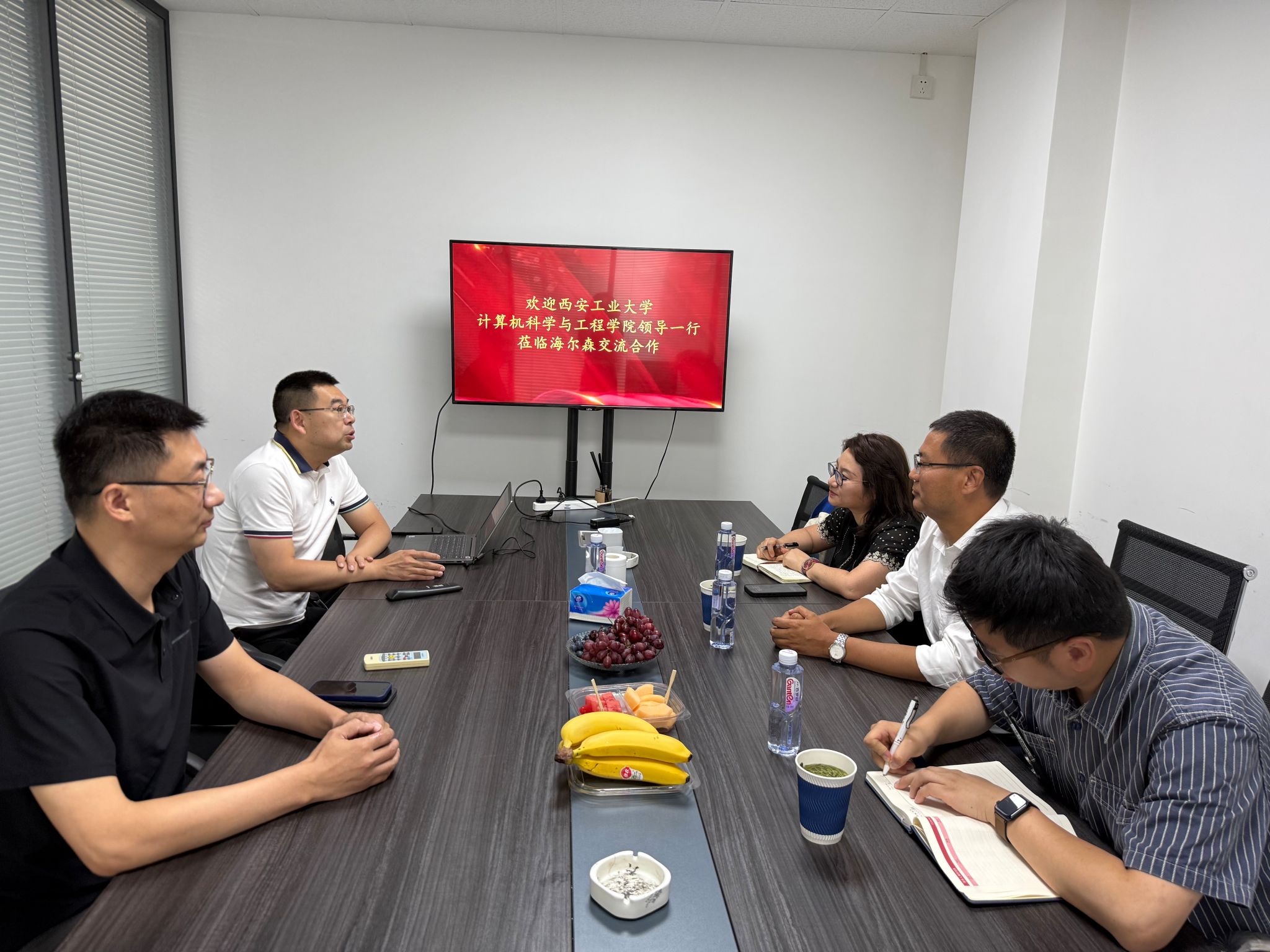 党委书记杨正强一行赴陕西海尔森科技有限公司开展访企拓岗专项行动。座谈会上,海尔森电子总经理刘先生首先介绍了公司发展现状、行业及人才需求。接着,杨正强书记就专业建设、人才培养及学生实习就业等方面与企业进行了深入交流。双方表示,将进一步加强产学研合作,共同探索校企协同育人新模式,助力学生高质量就业。会后,大家一起参观了公司的办公和生活区域及技术培训场地。