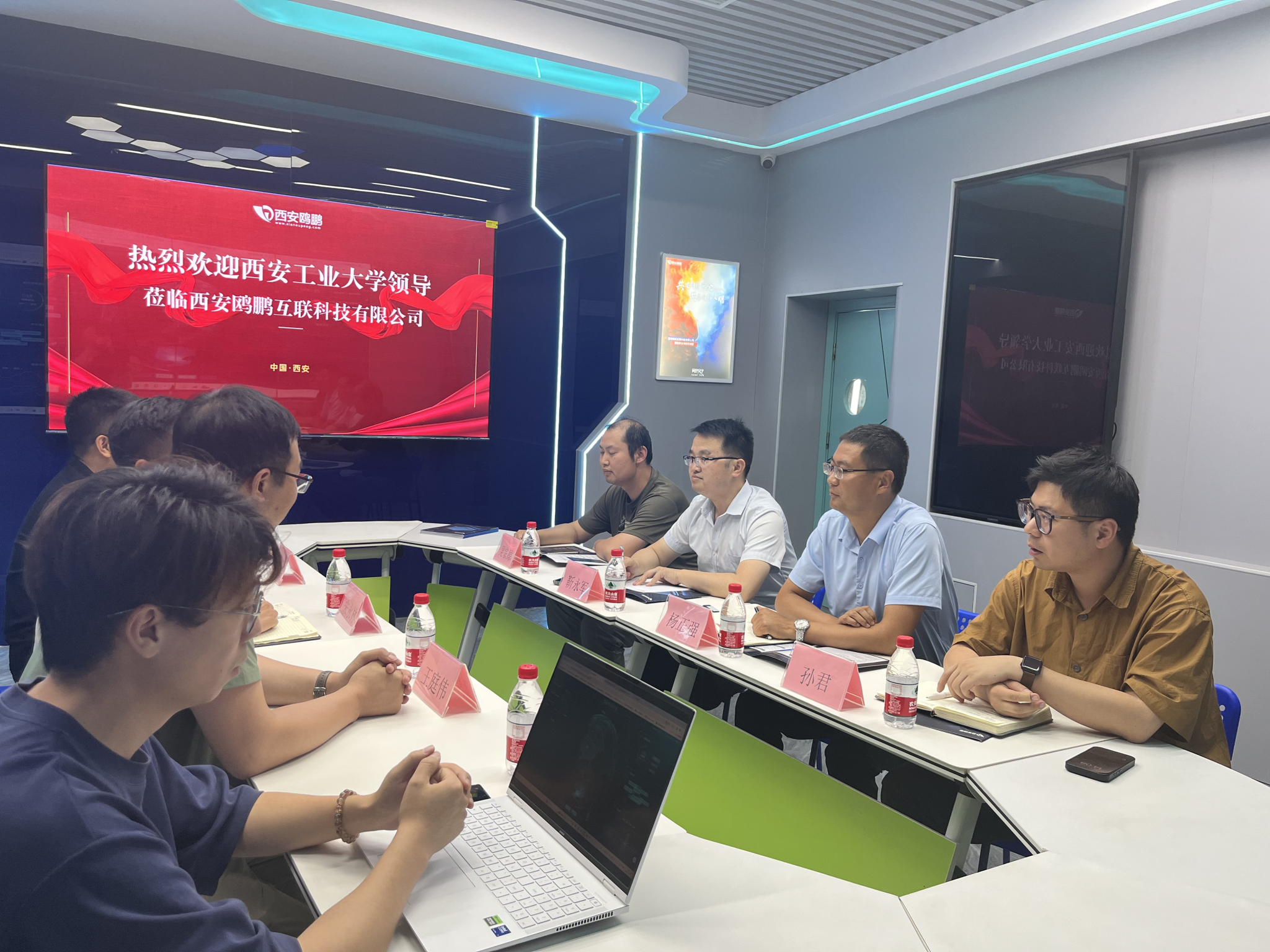 党委书记杨正强、副书记靳永军等一行赴西安鸥鹏互联科技有限公司开展访企拓岗专项行动。鸥鹏科技总经理宋永林及代表热情接待。座谈会上,宋永林详细介绍了公司发展历程、核心技术及人才需求;技术总监王庭伟介绍了公司最新研发的软件项目,并向与会嘉宾讲解其功能应用。