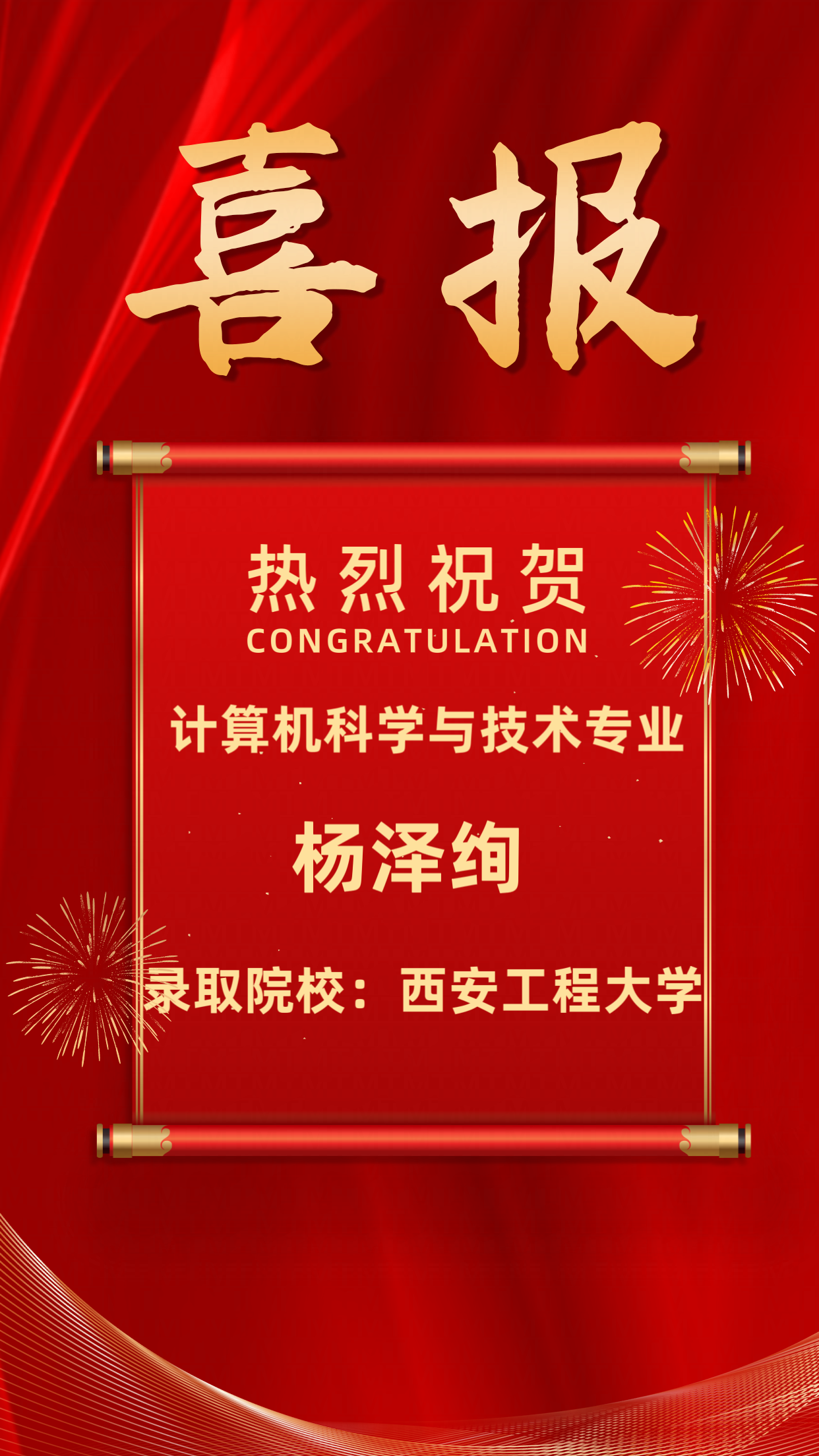 2025届升学榜|杨泽绚 -西安工程大学