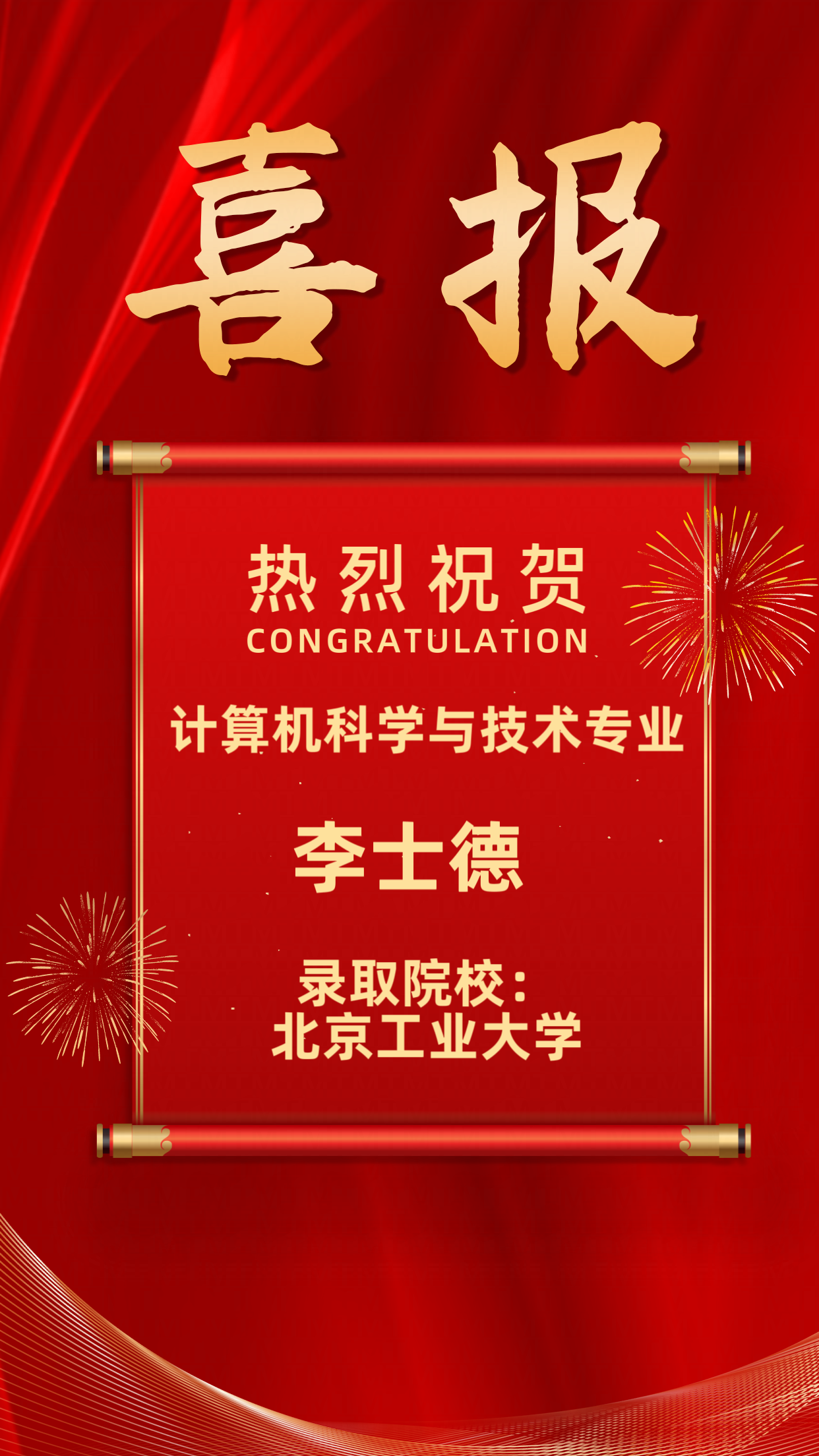 2025届升学榜|李士德 -北京工业大学