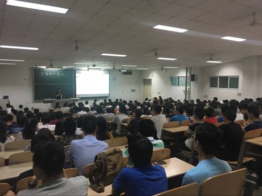 在教1-202召开第三届全国大学生“互联网+”大赛动员大会,2014级全体学生参加了会议,徐飞老师出席了会议。