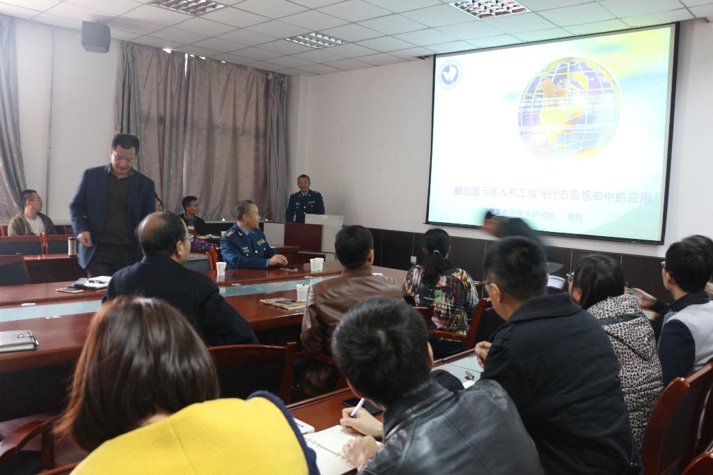 随后,空军航空医学研究所第二研究室主任程师做了“触觉显示在人机工效飞行态势感知中的应用”报告。姚钦高工旁征博引,并结合自身研究过程与经历,与师生分享了人体触觉在飞行态势感知中的原理以及实现过程。