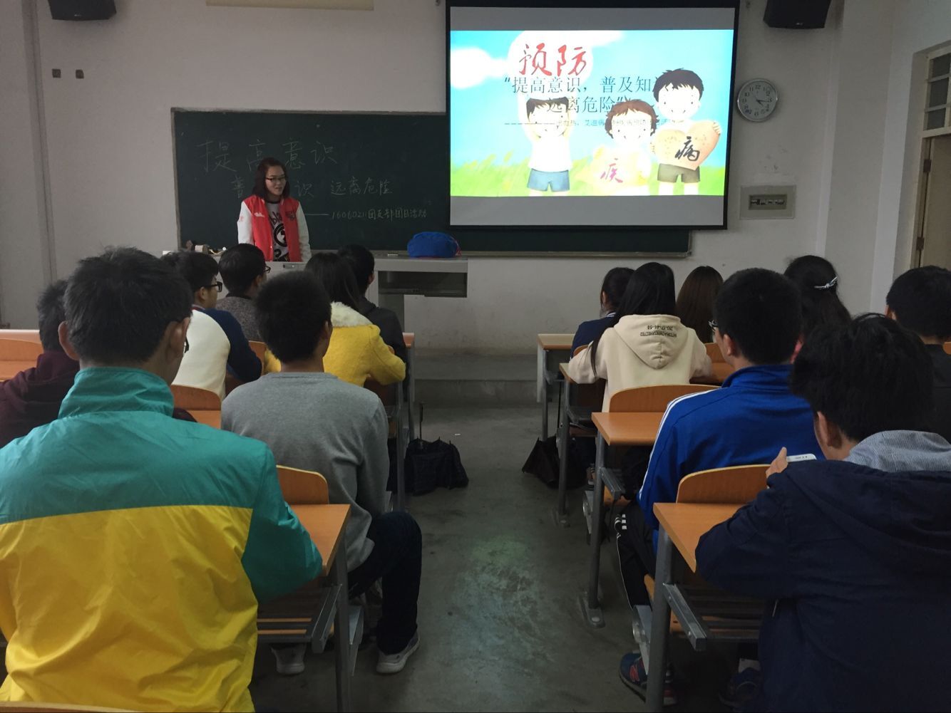 大学生是社会中的活跃群体,是祖国的未来,所以营造一个健康、文明、向上的校园文化氛围就显得很重要。2016年10月25日下午4:00,16060211团支部全体同学在教3-401开展了以“提高意识,普及知识,远离危险”为主题的预防出血热,艾滋病等系列疾病预防知识的团日活动。