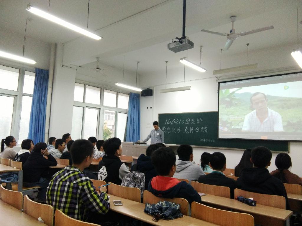 活动在主持人陈宇和陈晴真实而感人的开场白拉开了帷幕。支部成员们在优美的背景音乐观看了《最美孝心少年-街舞女孩为妈妈撑起半边天》、《最美孝心少年-坚强的白莲花》,成员们脸上的表情都变得沉重起来,现场无一人不被她们的坚持与坚强所感动。观看完后,同学们深受影响,纷纷发言表达自己对父母的感恩之情:胡文杰同学讲到自己小时候和父亲一起打游戏,刘建、张桥和张雪同学分别朗诵《母亲》、《纸船》和《游子吟》等诗歌,表述了自己对远在他乡父母深深的思念。