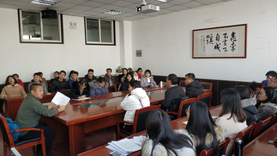会议最后,在党徽下,高金生老师带领新入党和转正的同志们庄严宣誓!随时准备为党和人民牺牲一切,永不叛党!