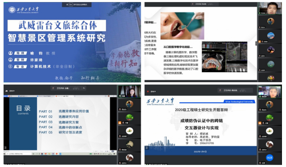 于1月6日-11日期间,通过“腾讯会议”网络平台,陆续开展2020级计算机科学与技术、软件工程和电子信息硕士专业线上答辩工作,累计组织会议7场,答辩780余小时,共有107名研究生参加硕士学位论文开题答辩。为确保答辩工作顺利有序地进行,学院严格遵照研究生院网络答辩工作流程,精心设置答辩组,提前制定线上答辩流程和相关预案等准备工作。研究生督导张志文教授参与指导。