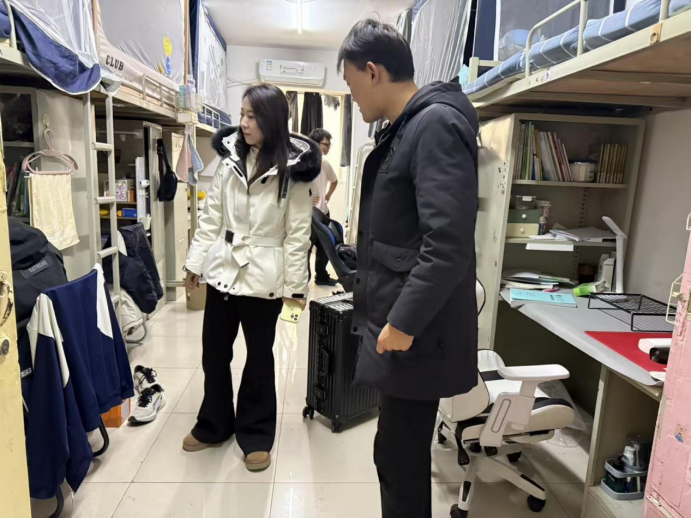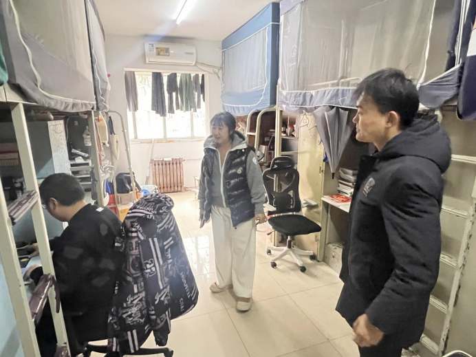 2023级辅导员呼延晓蓉、李凯、于杰深入学生宿舍,开展寒假前走访慰问活动。老师们与同学们面对面交流,细致叮嘱离校注意事项与假期安全要点,为同学们送上暖心祝福与安全“大礼包”。