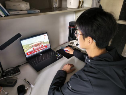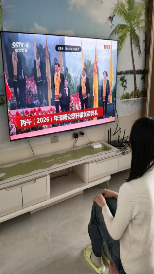 上午9时50分,伴随着击鼓鸣钟的宏大场面,公祭典礼在陕西黄陵桥山祭祀广场正式开始。全体学生肃然端坐,聚精会神地观看直播画面。典礼通过击鼓鸣钟、敬献花篮、恭读祭文、乐舞告祭等环节,生动展现了中华儿女对轩辕黄帝的崇高敬仰与深切追思。庄严肃穆的氛围、古朴典雅的礼仪以及深厚的文化内涵,深深感染了在场的每一位同学,不少同学在观看过程中凝神静思,为中华文明的源远流长感到由衷自豪。