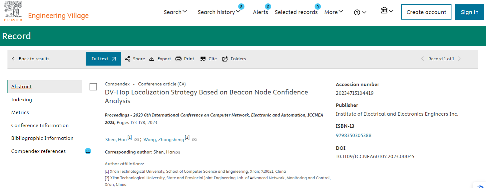 计算机科学和工程学院、人工智能与数据科学研究院联合主办的第六届International Conference on Computer Network, Electronic and Automation,ICCNEA)于2023年9月22~24日在西安顺利召开,经过主办单位、协办单位、IEEE CPS的通力合作,会议录用论文于2023年11月30日进入EI Compendex数据库,完成EI检索。