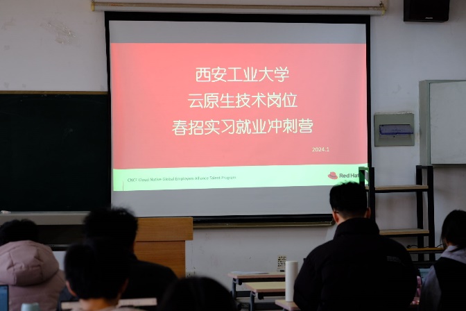 云原生技术双创工作室联合红帽软件(中国)有限公司及其合作伙伴西安引领云科技有限公司在学院楼工1-508教室为30余名本科及研究生学子举办了为期10天的“云原生寒假春招集训项目”。