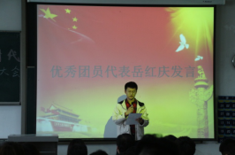 优秀团员和优秀团干代表岳红庆、岳蕊分别发言,讲述自己身为优秀团员和优秀团干,怎样在学习和生活中不断练习过硬本领,在学生中起到领头羊、排头雁的作用。