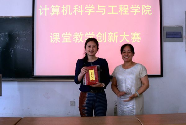 李晋惠教授为获得本次比赛一等奖获奖者马静老师颁奖。