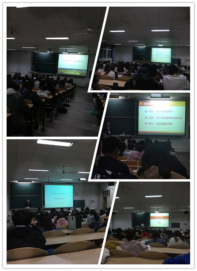 分校第59期党课课程安排,党课结业考试于10月30日晚7:00在教1-101如期进行,参加本次结业典礼的老师有学院党委组织员董元浩老师、辅导员吴宗原老师和于杰老师。