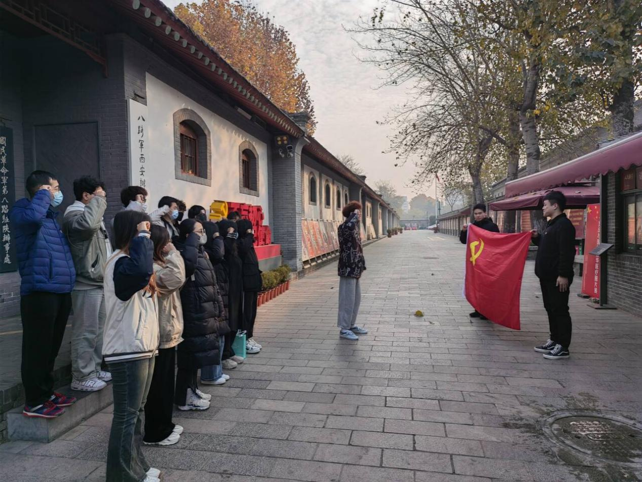 学生第三、第四和第六党支部全体新入党党员,佩戴熠熠生辉的党徽,齐聚在八路军西安办事处门前。在庄严而神圣的宣誓仪式中,三支部贺前晖同学带领大家宣读誓词,表达了对中国共产党的无限忠诚与热爱。