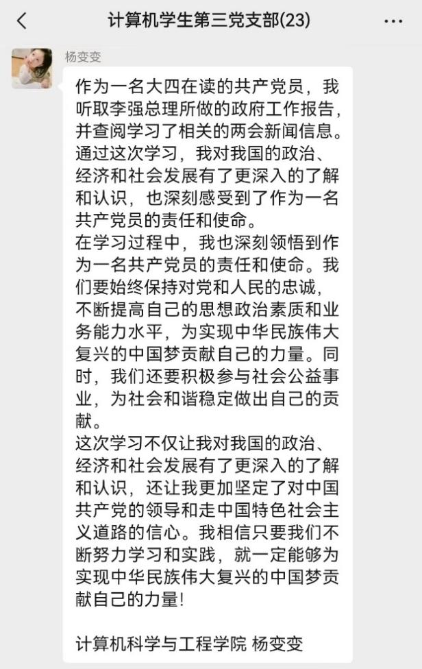 通过这次交流活动,支部党员不仅加深了对两会精神的理解,也增进了党员之间的情感交流,凝聚了团结奋进的力量。学生第三党支部将以此次交流活动为契机,不断增强政治意识、大局意识、核心意识和看齐意识,更好地为党和人民的事业贡献力量。