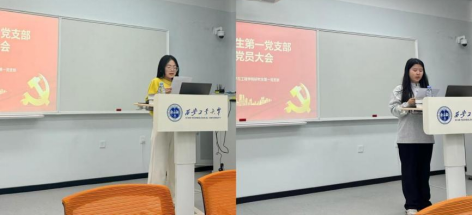 对预备党员赵梦卓、谢惠敏,依次宣读转正申请书,详细回顾预备期内在理论学习、科研工作、服务同学等方面的成长与收获,深刻剖析不足并明确改进方向,郑重恳请党组织批准按期转为正式党员